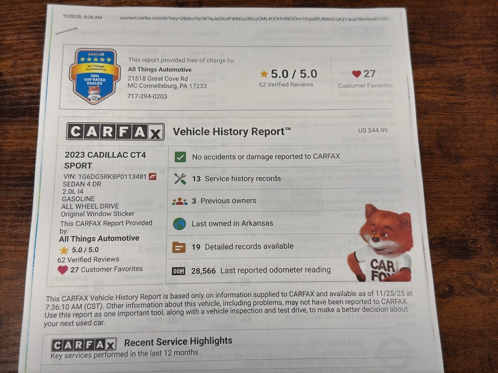 Sporty styling, premium materials and driver-focused ergonomics create a sophisticated interior environment. The AWD system improves traction and stability in variable road conditions, making this Cadillac a practical choice for Pennsylvania seasons. With a strong performance profile and efficient fuel economy from the 2.0L turbocharged engine, this Cadillac CT4 balances spirited driving with everyday usability.