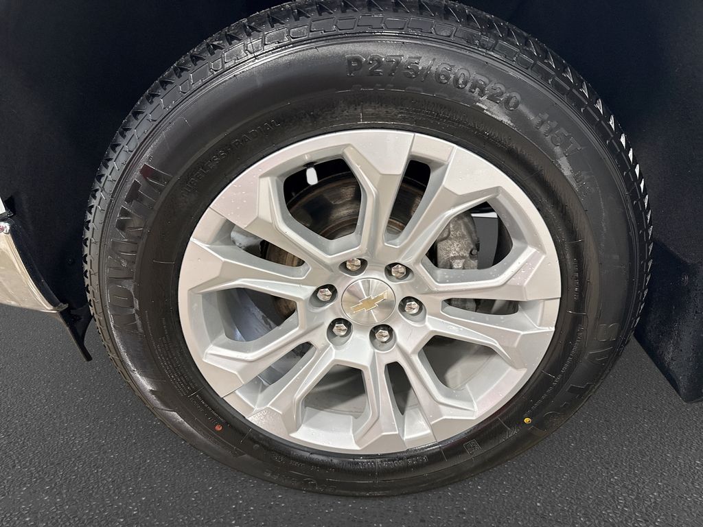 LTZ Convenience Package II: 2nd Row Heated Outboard Seats; Power Sliding Rear Window with Rear Defogger; Universal Home Remote; Adaptive Cruise Control. Dark Essentials Package: Black Name Plates; Front Black Bowtie Emblem; Black Tailgate CHEVROLET Lettering. Preferred Equipment Group 1LZ: Driver Memory; SiriusXM with 360L; Electric Rear-Window Defogger; Theft Deterrent System (unauthorized Entry); Front Rainsensing Wipers; Compass; Heated Steering Wheel; 120-Volt Instrument Panel Power Outlet; Heated Driver and Front Outboard Passenger Seats; Color-Keyed Carpeting Floor Covering; OnStar and Chevrolet Connected Services Capable; Front Rubberized Vinyl Floor Mats; Rear Rubberized-Vinyl Floor Mats; Power Front Passenger Windows with Express Up/down; 12.3" Multicolor Reconfigurable Digital Display; Chrome Mirror Caps; Power Rear Windows with Express Down; Integrated Trailer Brake Controller; Single-Speed Transfer Case; 275/60R20 AS BW Tires; Front Frame-Mounted Black Recovery Hooks; Keyless Open and Start; Auto-Dimming Inside Rearview Mirror; LED Cargo Area Lighting; Bluetooth For Phone; Remote Vehicle