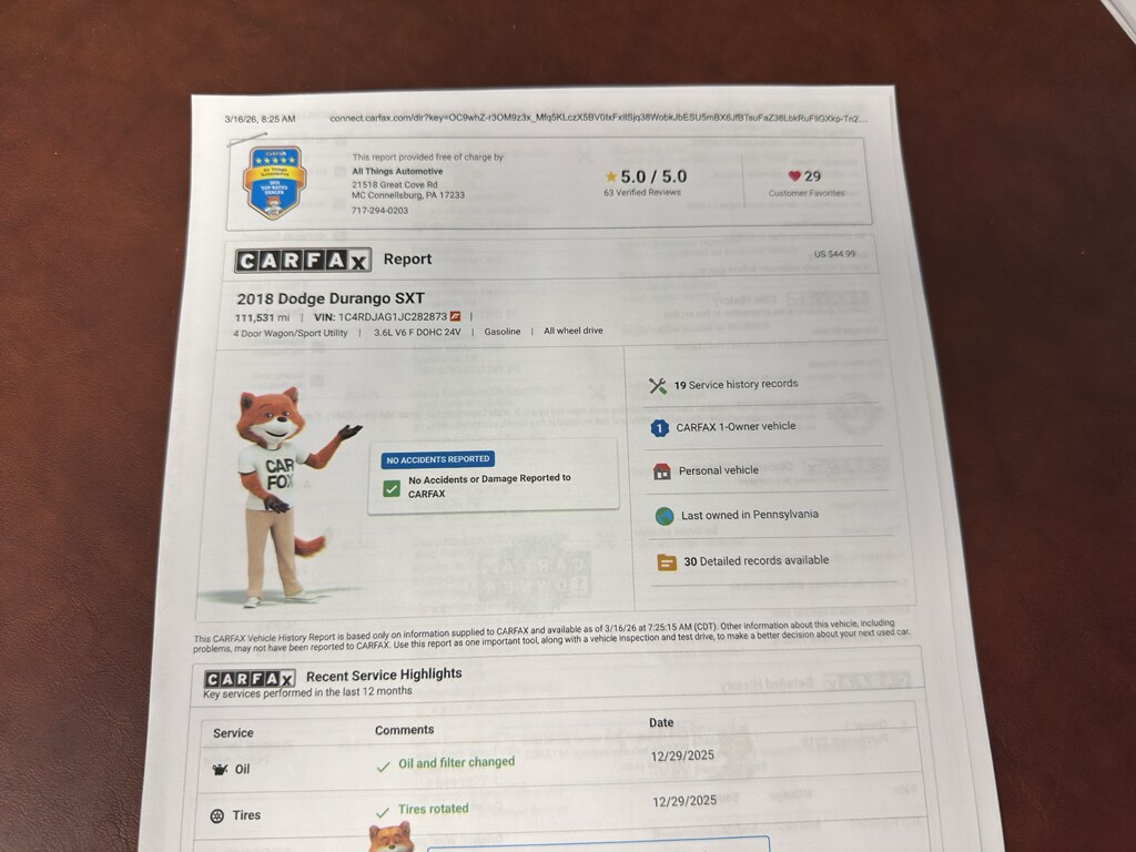 Act now to secure this great-value 2018 Dodge Durango SXT with AWD and 3.6L V6 - schedule your test drive in McConnellsburg, PA today and experience the difference firsthand.