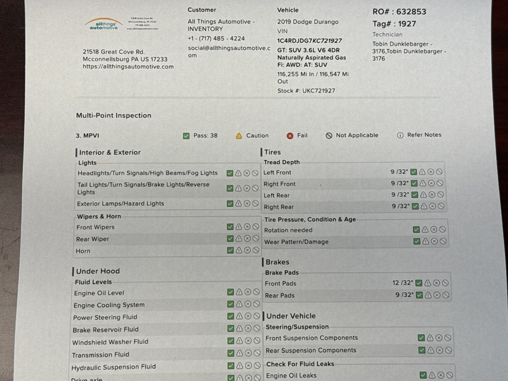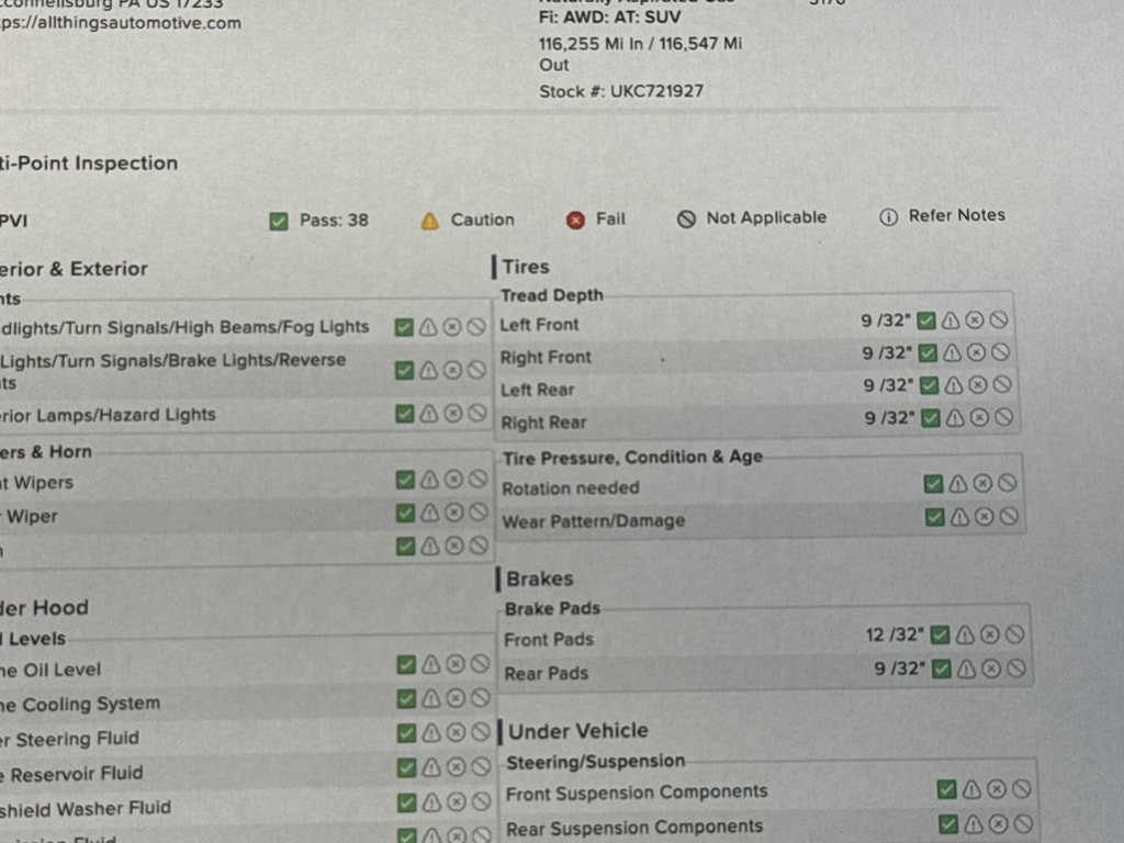 Every vehicle at All Things Automotive undergoes a full mechanical inspection and standard service including a brake caliper service, oil change, new engine and cabin air filters, and multi point inspection! All wearables are no less than double the state safety minimums.