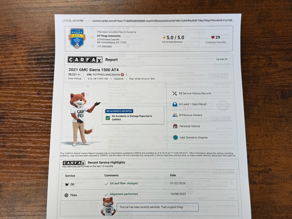 Step inside to a premium cabin highlighted by a BOSE stereo that fills the interior with crisp, immersive sound for every drive. The CARFAX Clean Report offers added peace of mind about the truck's history. The AT4 trim adds signature styling and capability upgrades-skid plates, off-road suspension tuning, and rugged exterior accents-so you get capability and presence in one package.