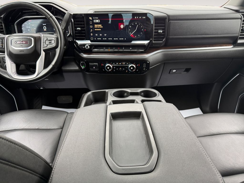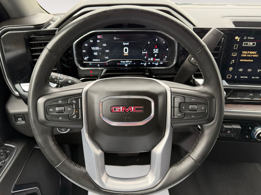 Start this model from inside with remote start. This 1/2 ton pickup's Lane Departure Warning helps keep you in your lane. It is pure luxury with a heated steering wheel. This vehicle is a certified CARFAX 1-owner. The steering wheel audio controls on this GMC Sierra keep the volume and station within easy reach. This model offers Automatic Climate Control for personalized comfort. See what's behind you with the back up camera on it. The leather seats in this unit are a must for buyers looking for comfort, durability, and style. This 2025 GMC Sierra 1500 is equipped with the latest generation of XM/Sirius Radio. This model offers Android Auto for seamless smartphone integration. This model has a clean CARFAX vehicle history report. Apple CarPlay: Seamless smartphone integration for this 1/2 ton pickup - stay connected and entertained on the go! Lane Keep Assist in this 1/2 ton pickup helps maintain safe driving by gently steering to stay within the lane.