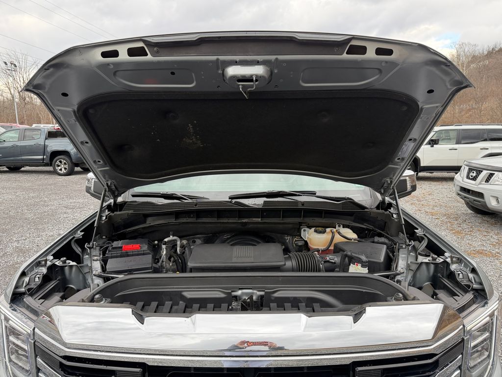 Preferred Equipment Group 4SA: HD Rear Vision Camera; LED Cargo Area Lighting; Remote Vehicle Starter System; Electric Rear-Window Defogger; 5.3L EcoTec3 V8 Engine; Theft Deterrent System (unauthorized Entry); Chrome Header and Chrome Grille Insert Bars; 170 Amp Alternator; Auxiliary External Transmission Oil Cooler; Front Rain-Sensing Wipers; GMC Pro Safety; Trailering Package; 120-Volt Interior Power Outlet; 10-Speed Automatic Transmission; Front 40/20/40 Split-Bench Seat; 18 X 8.5 6-Spoke Machined Aluminum Wheels; 2 Charge/data USB Ports; Steering Wheel Audio Controls; 2 type-C Charge-Only Rear USB Ports; Color-Keyed Carpeting Floor Covering; OnStar Services Capable; Power Front Passenger Windows with Express Up/down; Deep-Tinted Glass; 6-Speaker Audio System Feature; Power Rear Windows with Express Down; Integrated Trailer Brake Controller; SiriusXM with 360L Trial Subscription; Single Speed Transfer Case; Power Front Windows with Driver Express Up/down; Manual Tilt-Wheel and Telescoping Steering Column; Front Frame-Mounted Black Recovery Hooks; Keyless Open and Start; Wi-Fi Hotspot Capable; Perimeter Lighting; Push Button Start; Rear Wheelhouse Liners; Auto-Locking Rear Differential; Power Door Locks. Sterling Metallic. **Equipment listed is based on original vehicle build and subject to change. Please confirm the accuracy of the included equipment by calling the dealer prior to purchase.**