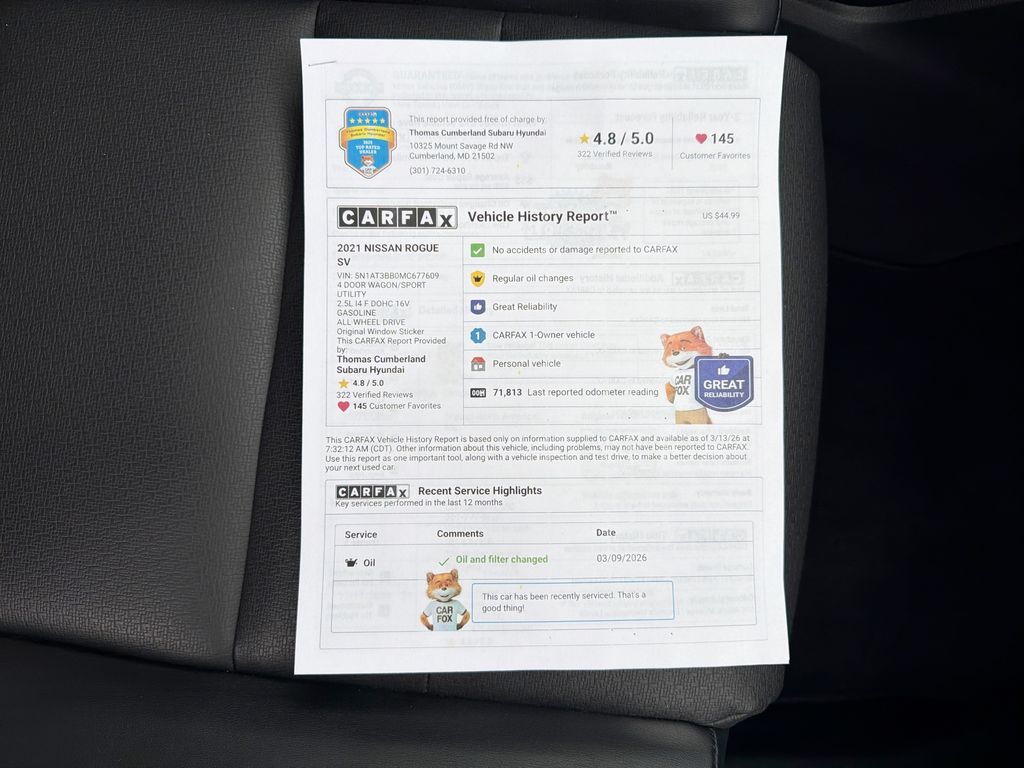 Looking for a reliable, fuel-efficient crossover in Cumberland MD? This 2021 Nissan Rogue SV AWD with a 4-cylinder 2.5L gasoline engine offers excellent value, comfort, and capability â€" and it's priced to be the best in the area. Ideal for families and commuters, the Nissan Rogue SV delivers smooth handling with available all-wheel drive confidence for seasonal roads. Premium convenience features include Hands-Free Bluetooth for safe calling, Apple CarPlay for seamless smartphone integration, and Automatic Climate Control to keep everyone comfortable. The Back-Up Camera enhances visibility and parking ease. This model carries a CARFAX 1-Owner history, reflecting careful ownership and consistent maintenance. Inside, you'll find roomy seating, thoughtful storage, and modern tech designed for daily driving and longer trips. The efficient 2.5L engine balances performance and economy, while Nissan's engineered ride quality provides a composed drive around Cumberland and beyond. Don't miss this competitively priced 2021 Nissan Rogue SV AWD â€" the best price available for its condition and features. Schedule a test drive today in Cumberland MD and experience the blend of practicality, safety, and technology that makes this Nissan Rogue an outstanding pre-owned crossover choice. Financing options available for qualified buyers.