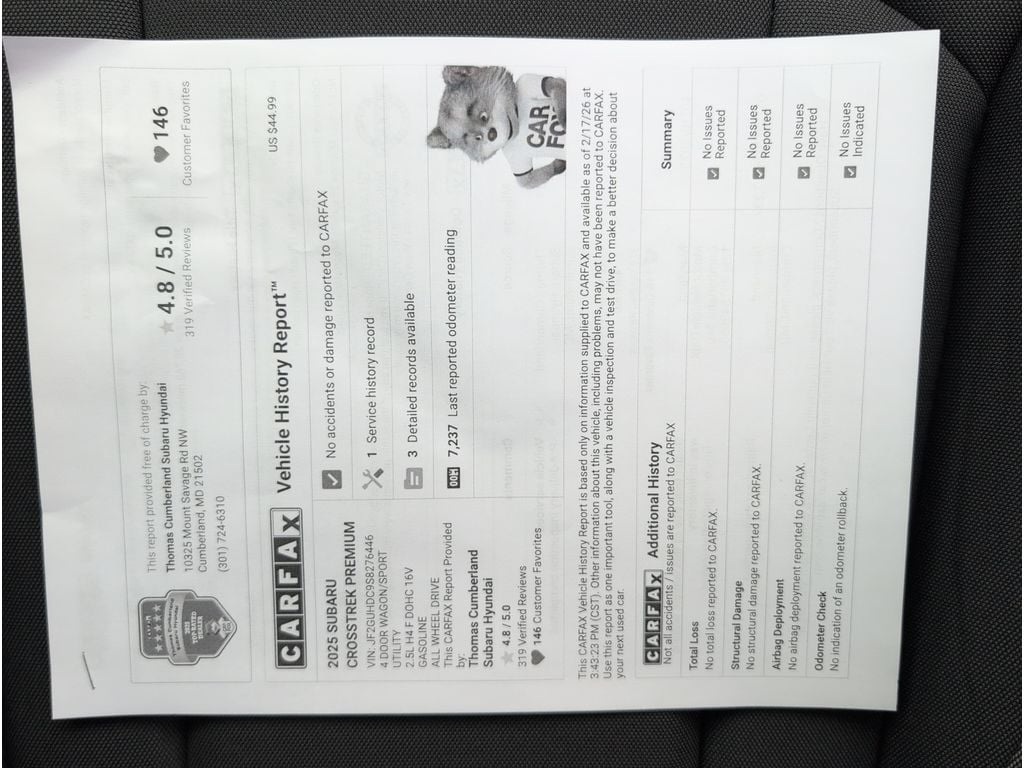 This 2025 Subaru Crosstrek Premium with low miles and a strong feature set is competitively priced for quick sale. Contact us to schedule a test drive in Cumberland, MD, and experience the combination of performance, technology, and value that makes this Subaru Crosstrek the smart choice.